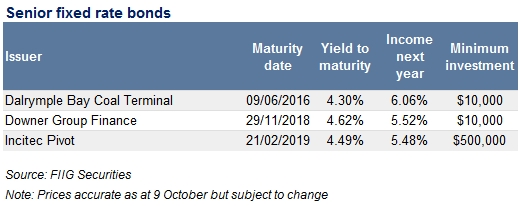 The 4.49 per cent return on the Incitec Pivot bond, with over four years to run, is a good option if you can invest $500,000 in a single asset.