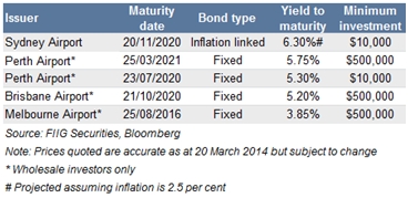 - While not directly comparable to the new Perth bond, the Sydney Airport November 2020 bond with a similar term, is considered to represent value in the sector with a projected yield to maturity of 6.30% (assuming inflation of 2.5%).