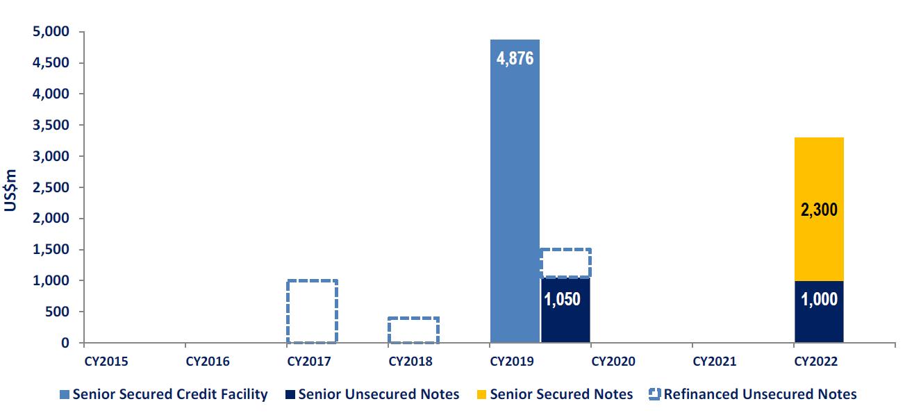 • The transaction was initially announced as a USD1.5bn senior secured bond, and following strong appetite the deal was upsized to USD2.3bn