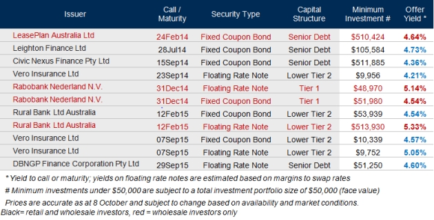 This range of yields (4.21% to 5.33%) represents anywhere between 13 and 143 basis points (bps) over the best term deposit rates mentioned above. Five years ago, when term deposit rates were a lofty 8% that difference may not have been enough to raise eyebrows, but 100bps over 4% is quite a different story. One percent is only a 12.5% improvement over a base rate of 8%, but it is twice that, or a 25% improvement, on a base rate of 4%.