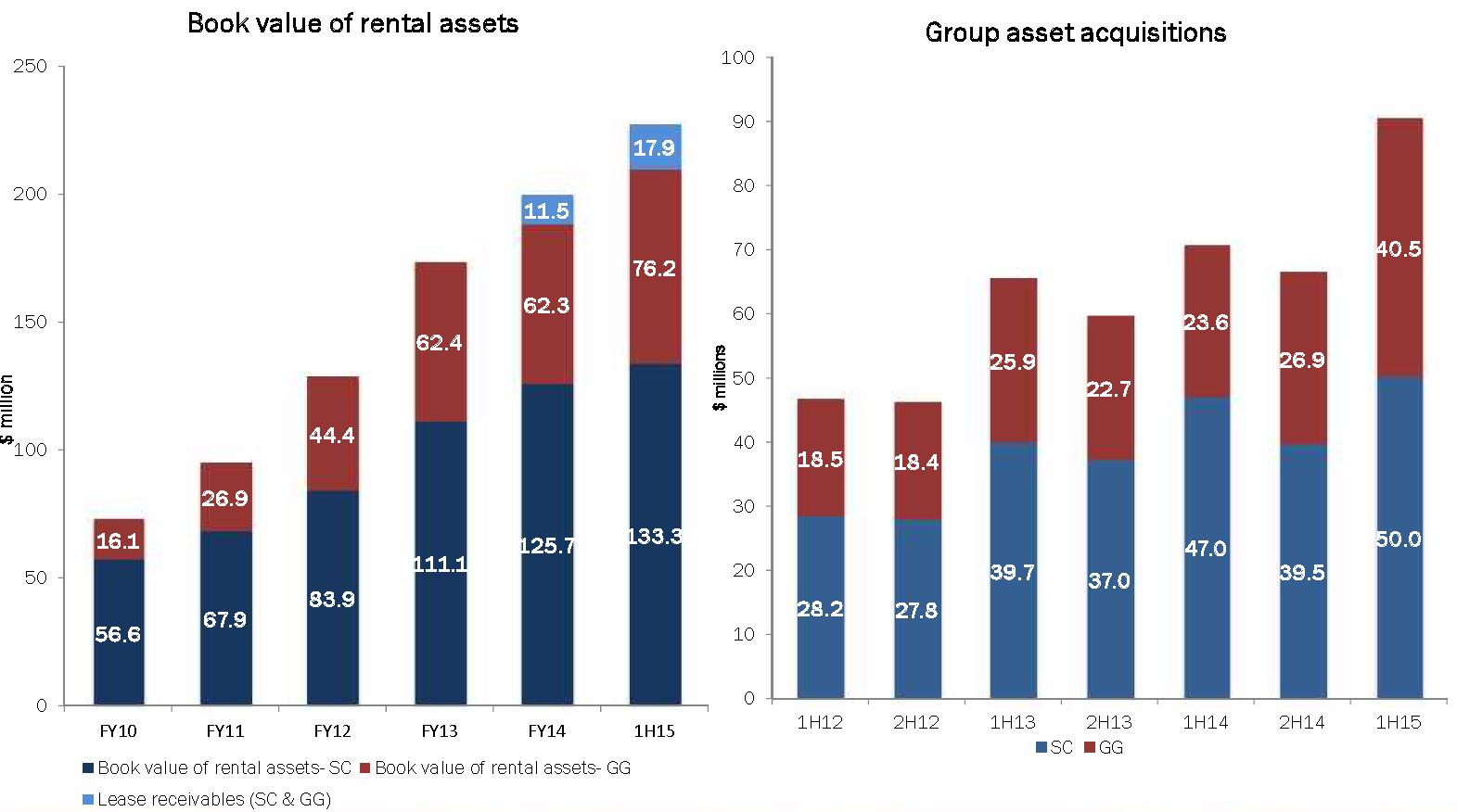 Hospitality: Revenue was up 23% to $83.0m. The hospitality division performed in line with expectations during the first half with acquisitions of $50.0m. The hospitality rental asset base including lease receivables are now $221.1m, up 9.0% from 2H14.