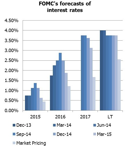 The last week has validated this strategy. The FOMC (the US’s Federal Open Markets Committee, the body responsible for setting US interest rates like our RBA) met last week and shocked markets by lowering their own forecasts of US interest rates in 2015. In fact they lowered them by 50%, from a previous rise in rates forecasted at 1.00% to now just 0.50%.